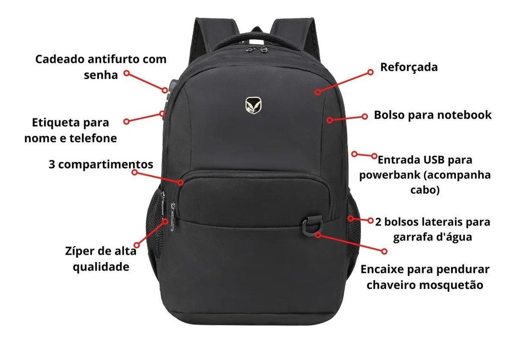 Mochila Antifurto com Cadeado e Entrada USB