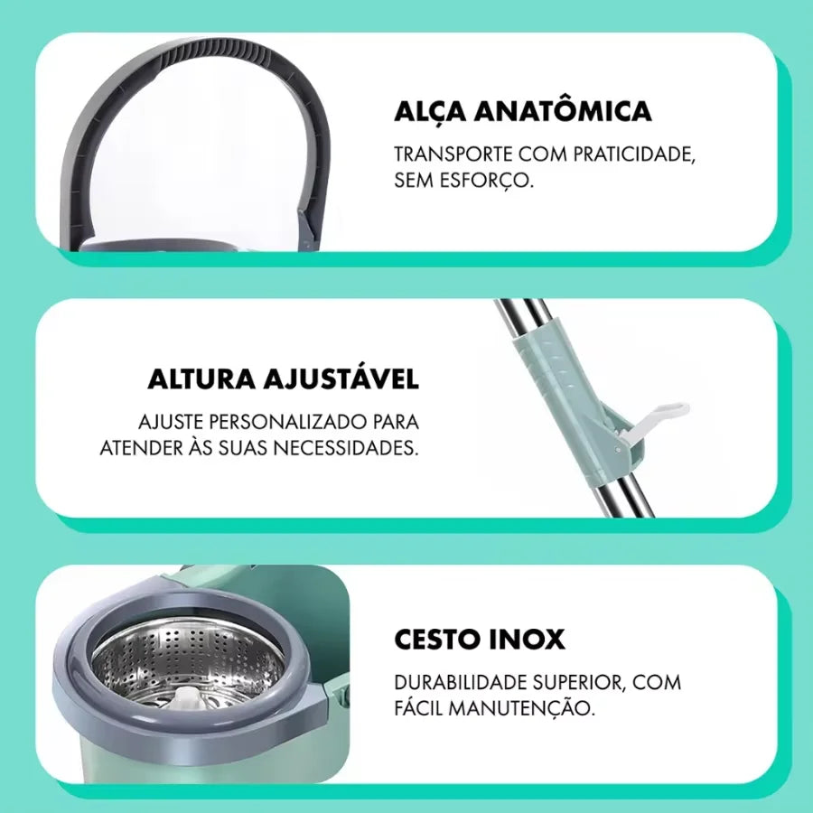 🌀 Base giratória 360° com design articulado para alcançar os cantos mais difíceis