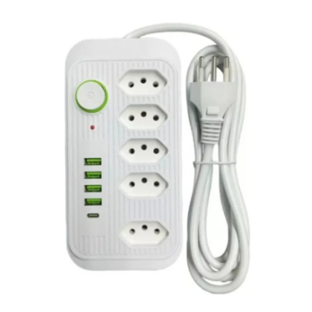 ✅ 5 tomadas + 4 portas USB + 1 USB Tipo-C – carregue tudo no mesmo lugar